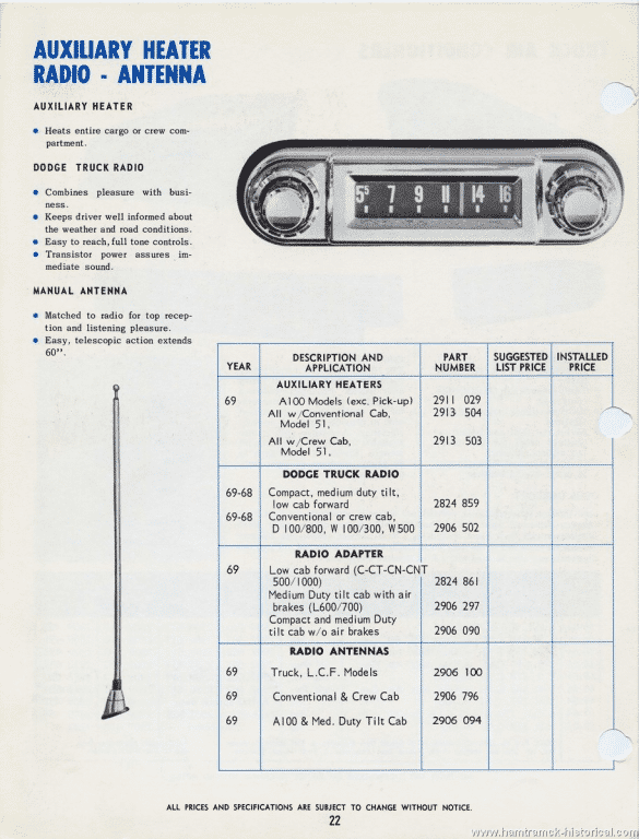 3501 622 2PD 1306 MoPar 1973 MoPar A-bodies AM PB radio