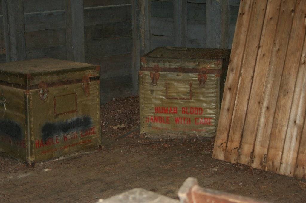 The cabin is part of Saint Joseph Abby, I think they stopped using it in the mid 80's. Too dark to tell what was written on the boxes without the flash.Prepping for the Zombie Apocalypse?