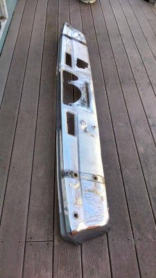 This is a 48 year old bumper with rust holes at the two inside bumper bolt holes.