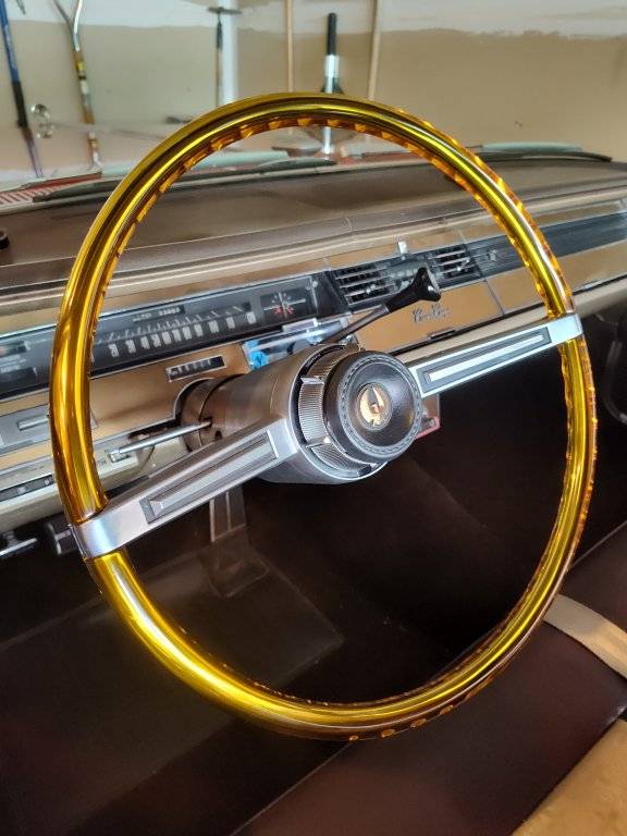 The translucent portion of those wheels was crystal clear when they were new so you could see the chromed metal ring inside. Some had gold metal flake imbedded in the clear portion. They are awesome when done properly.