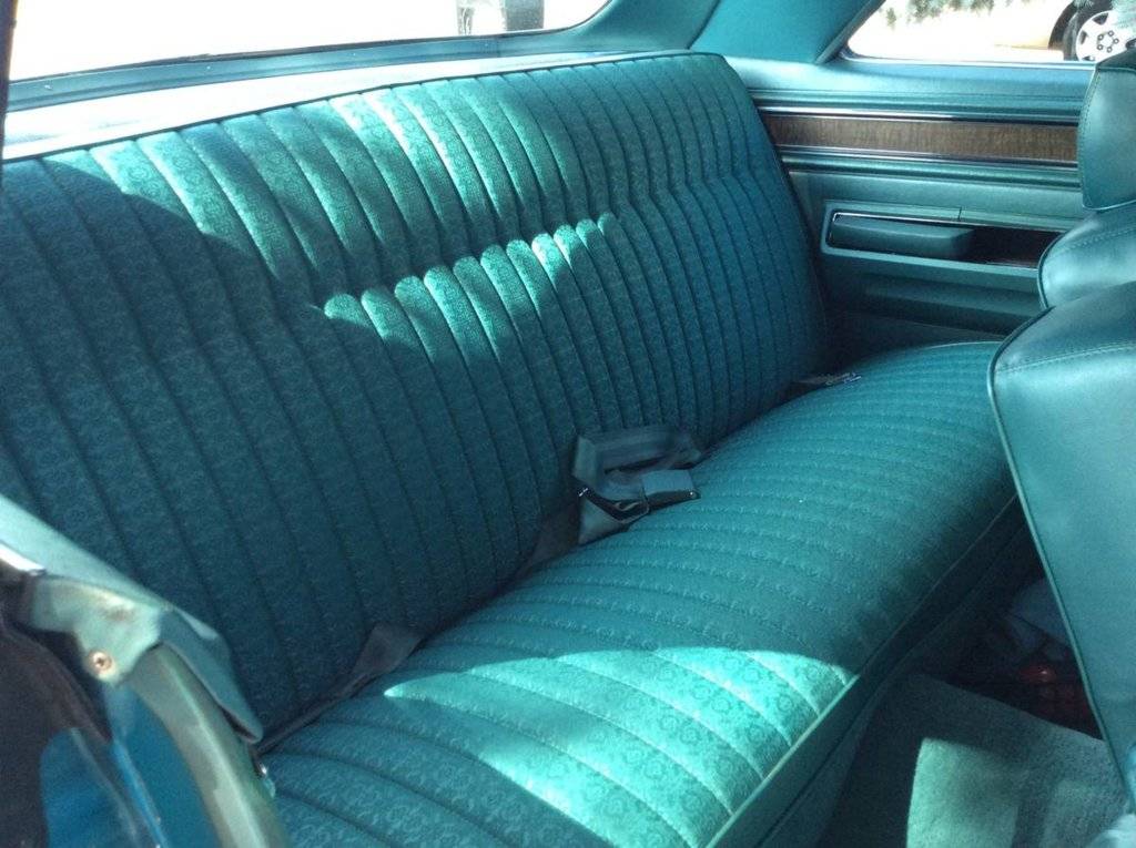 A. there is rust peeking throughout the vinyl top including at the bottom of the rear window. I was surprised, as the top already has been replaced (clearly the top is now white, not champagne as per the V1L code in the fender tag). Also, there are bubbles where the seams are (rear top, as well as rear sail panels). IMO the vinyl top has to go (cracking in many areas, and many small rust stains), and there is some repair work that will need to be done.