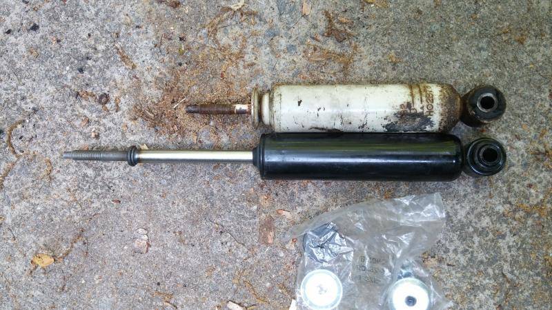 Okay, finally tore into this project this afternoon. I should have been suspicious, because, with a little bit of MP-50 spray on the upper threads and lower bolt, the hardware came right off. But now I see what the issue to getting the shock out is....I just don't see how to do it without taking things apart. What am I missing here? And yes, I do have the shock fully compressed.