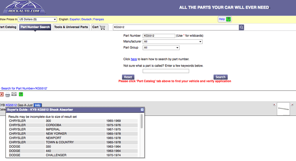 So. . . I ordered a set of KYB shocks for the Navajo. Front shocks are fine. Rear shocks are too short by about three inches. Couldn't find rear KYBs anywhere, except for a place called: Shocks Surplus which is where I got them. They either sent me the wrong rear shocks, or the boobs there think the short shocks are correct. After looking around, it appears no one has KYB rear shocks for this car. NAPA has a shock called "Performer" (apparently made by Monroe) and I think there is another cheap shock from Gabriel. What are you guys using for rear shocks on yer '73 Newport / NYKr - and maybe 71 and 72 ?