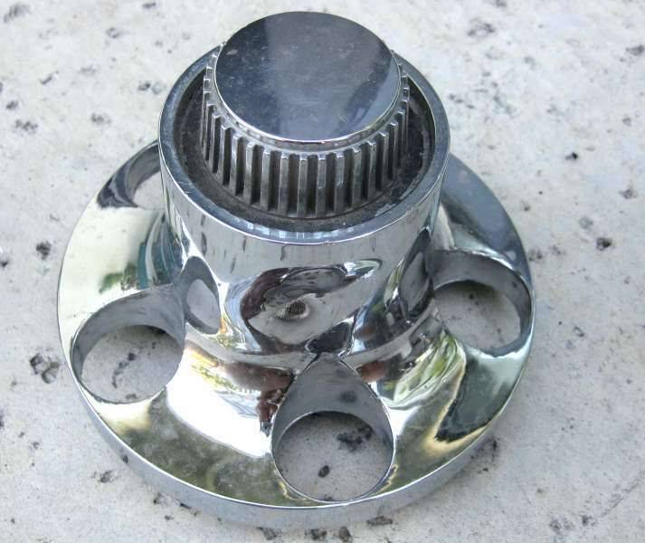I have some orphan Road Wheel center caps. Two are the early style, one is the late style. Early style caps each have a dent on the side and scratches on the face of the "gear"- some bozo walked thru the yard and hit each with a hammer. The late style is in nicer shape but does have a dimple in the center of the end cap. Asking $25 each, if you want I'll throw in a couple early style centers with the "gears" smashed off at no charge.
