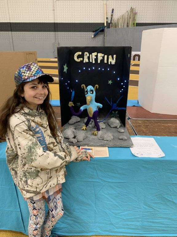 From there we go to meet her sister who is competing in a science fair for for aliens. Have a look at Griffin her entry.it should be a good day.