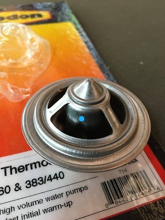Possible Problems: 1.) Fuel starvation: Fuel flow MUST be made RELIABLE and ADEQUATE. If, after one final filter replacement, the engine still stutters under WOT acceleration, then fuel line cleaning or replacement will have to be implemented. 2.) Cylinder block water jacket: Noting that on both sides, the cylinder block sides show significantly lower temperature (~195-200F) while the thermostat housing and water pump radiate at ~230F, with the cylinder heads showing ~ 215-220F, the possibility that extensive debris yet persists in the lower water jacket must be addressed. The wall plugs, one on each side, can be removed, and a fish wire can be inserted to ascertain whether significant debris remains in the lower jacket. If so, combined compressed air, pressurized water and vacuum cleaning all can and should be used to remove internal debris. Note: The engine was initially flushed with a water hose under normal house pressure attached to the heater intake hose after running the engine with an organic acid solution in the water jacket meant expressly for cleansing the cooling system. The engine ran throughout this procedure, forcing water through the cooling system from the pump intake, and out the top of the radiator via a plug-in spigot designed to direct coolant flow away from the running engine. This method has been used annually, and sometimes twice annually on my earlier MoPar B/RB vehicles. When the outflow tastes potable, the procedure is finished.
