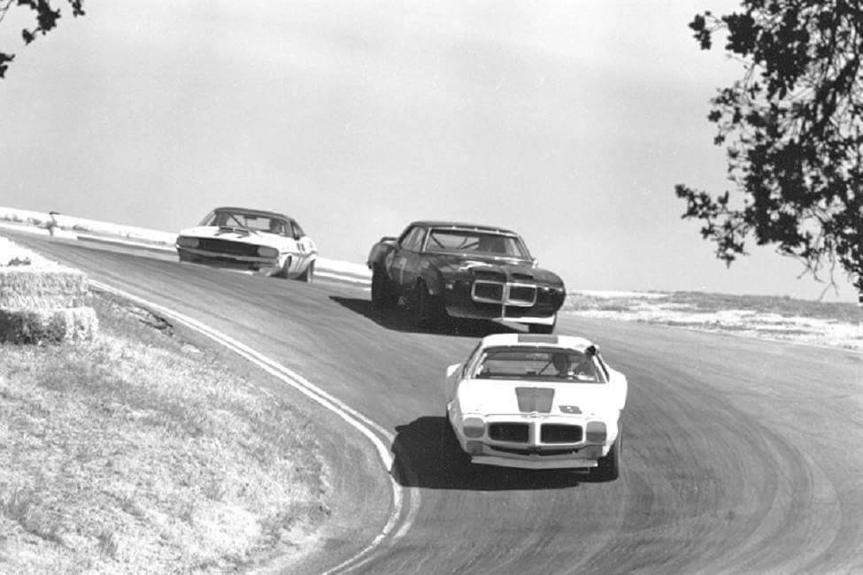 Laguna Seca in MontereyView attachment 109731 Sam Posey in the #77 Dodge Challenger chasing after a pair of Pontiacs