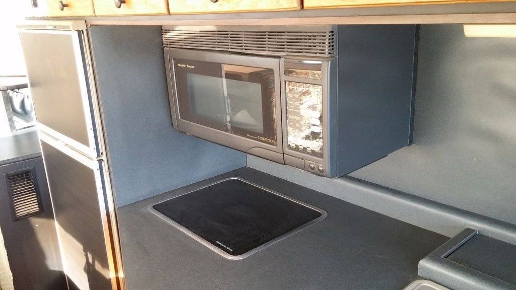 - 6 cubic foot Dometic refrigerator. AC, Propane, 12volt.
