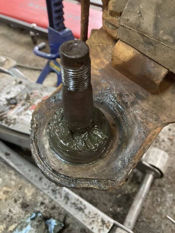 Today it’s the driver’s side ball joints. The boots were shot so I took everything apart to clean out all the old grease, pumped some new grease through them and put back together with new/good boots. The joints themselves are fine and everything is good on the right side.