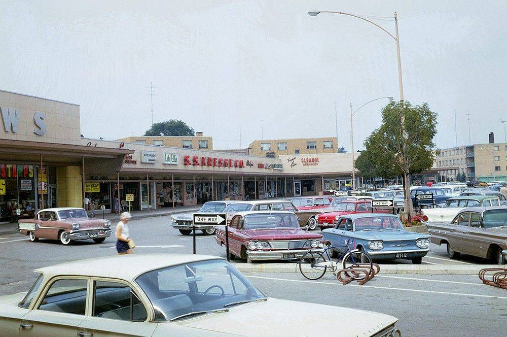 The store in the back, Cleanol, is a rug cleaning outfit opened 1937 in Toronto and according to their web site they still serve Toronto and surrounding towns. The blue licence plates look o be early 70's Ontario.Any idea where this pic is from? The last SS Kresge store I have seen was in Detroit. For those that don't know he is the founder of K-mart.