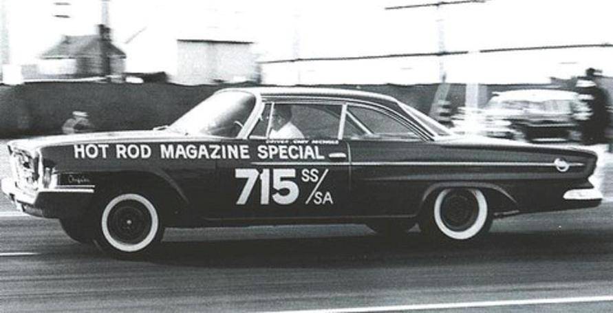 The big Chrysler ran a best of 12.88 @ 108.40, but Lloyd Cox in one of Mickey Thompson's Panchos took the win.
