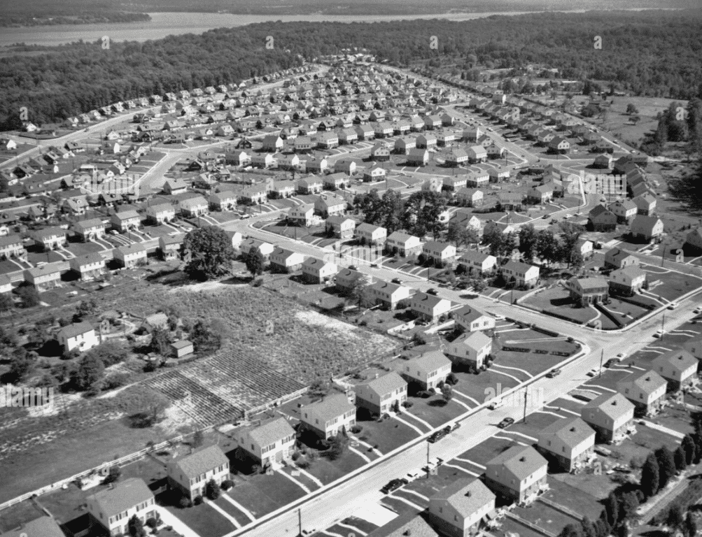 The peeps got to have some place to live......lolAsserted to be Alexandria VA, 1957. Example of "suburbia" hogged out of farmland all over post WWII America. Left middle, shows what was there before it became "rows of houses that are all the same, and no one seems to care."