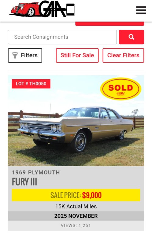 Not yet from the recent Mecum Auctions, but it sold for $9,000 at the GAA in November 2025.