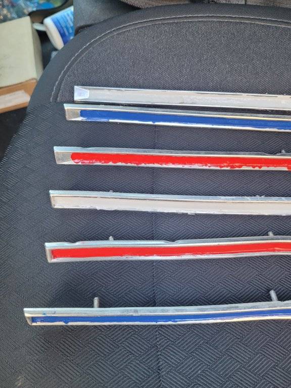 Sport Fury fender aluminum red,white and blue pieces. They are in good used condition. One mounting tab is broken. They need to be repainted. 100.00 + Shipping.