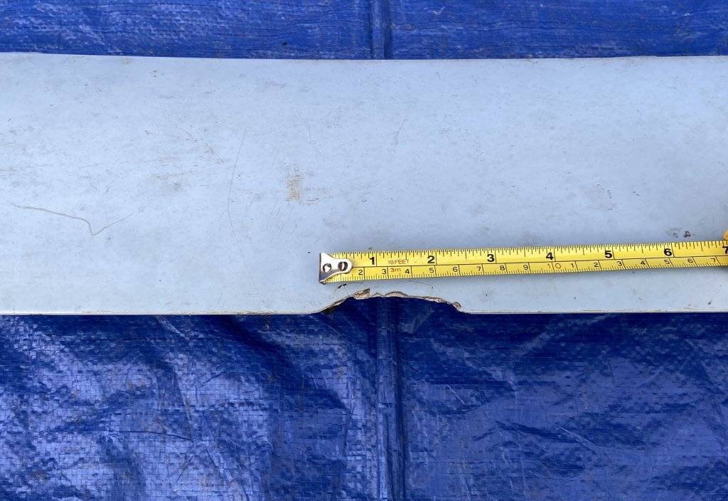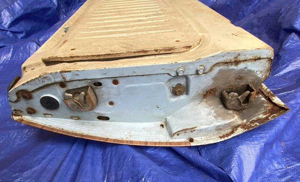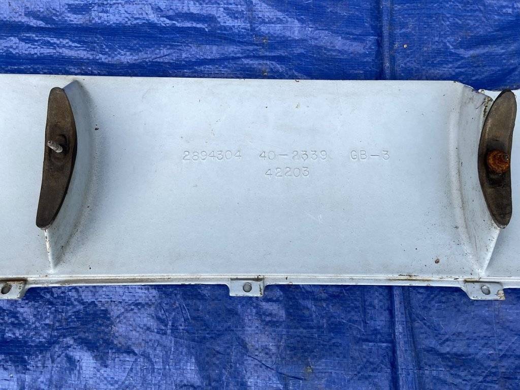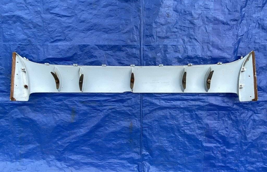 Nice condition, straight piece that's not warped or cracked. There is a small area of the fiberglas missing on the edge that will need repaired. All of the mounting pedestals are intact with the factory original studs, nuts and gaskets.