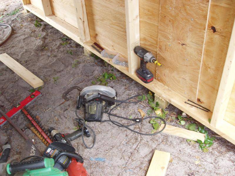 Are you building a bomb shelter or just a little 3 foot extension off the back of your shed here? If it were me,I'd just throw the block under the center for support,there isn't much weight there and the plywood sheeting will keep everything buttoned together.If for some reason code enforcement comes by or does one of their aerial searches ( and yes,they do fly around with helicopters here taking pictures) you won't have a major project taking down something you don't have a permit for.If your looking for nearly indestructable,I would have just poured a cement foundation and used cinder blocks instead.Home Depot and Lowes sell hurricane anchors that look like big spiral twist posts that screw into the ground and have a round eyelet on the top that allows a bolt to pass thru and into the side of the wall.Here's another option,just buy a used,travel trailer that's been gutted and use it for storage,or buy a used shipping container but these aren't easily moved.Years back I had a gutted airstream that worked great as a storage shed and shop to work in.