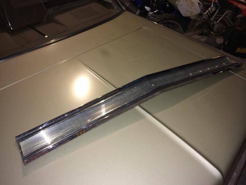 I had to buy 3 trunk trim panels before I got one I could live with for my Monaco. It isn't perfect but it looks like a good candidate for a re-chrome, unlike the other 2. I had absolutely no luck finding an NOS piece, and probably would of had to sell a kidney if I had.