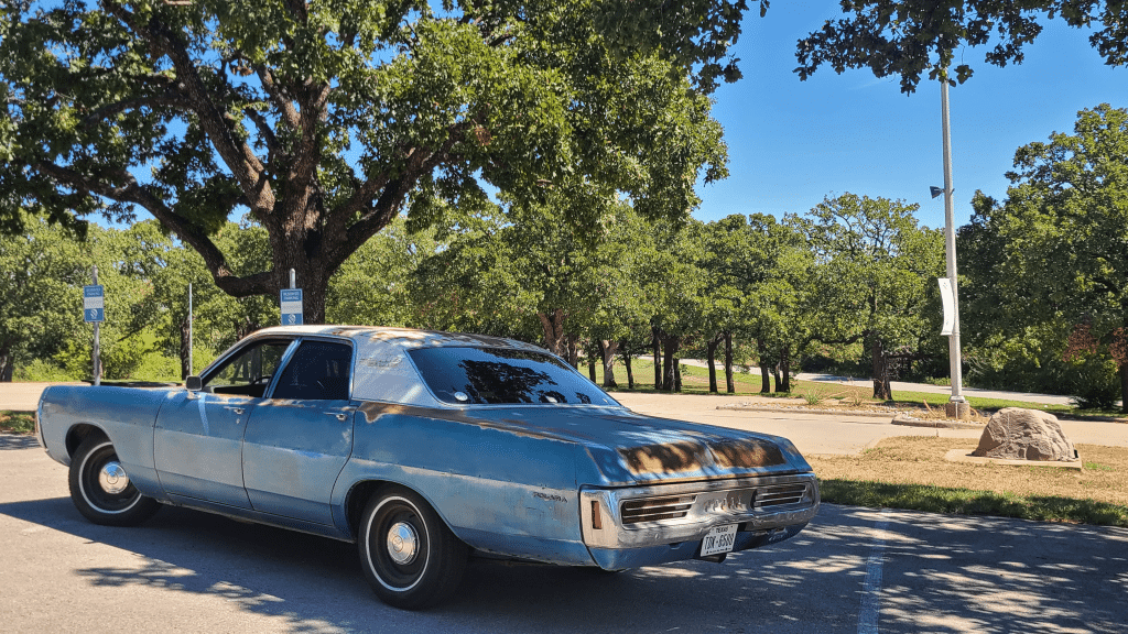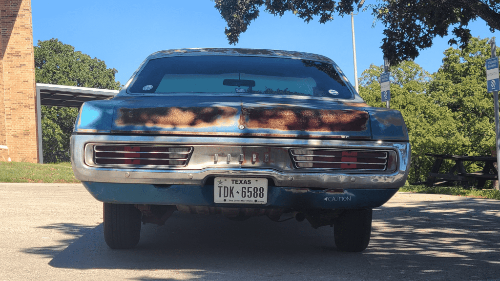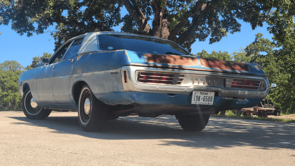 1971 Dodge Polara, base, 4 door sedan, 383 2-barrel, 727 transmission, all manual drums. FQ5 Coral Turquoise, black interior, black vinyl top (long gone), black carpet, black everything; pretty much no options or as basic as you can get, I believe radio and A/C were the only non-standard things it was purchased with. It either has 122,000 miles or 220, but I'm leaning towards 120. Bought for $3,100 in driving condition January 2023. This is my first pre-80s vehicle I've owned, and my first American car (I own a Plymouth Voyager, but haven't gotten it driving yet, and not really a car), and I've been in love with all things fuselage ever since I was introduced to them, so C bodies quickly became one of my goal cars to own, and the 71 Polara in particular was among my favorite of the fuselage designs, so I spent about a month looking for a 71-72 Polara and going through options and eventually settled on a listing in Phelan, California, so drove cross country to pick it up and trailered it back - around ~3,200 miles of driving in total. Dailied it for a good while, then had a couple hiccups where it wasn't driving for some periods, but now it's back to being the daily driver, and it's the car I use for every little thing; so long as it drives, I'll be using it. It was designed to be, in Dodge's own words: