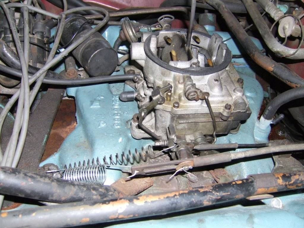 Since I got this car, I've been doing a few things to get it up to snuff with its maintenance and as many of the repairs as I could handle myself. So far I've managed to fix an oil leak at the oil pan drain plug (wrong drain plug), a power steering pump reservoir leak and the installation of a phenolic / wood spacer under the carburetor. Shown below are a few pictures to chronicle these mighty achievements.