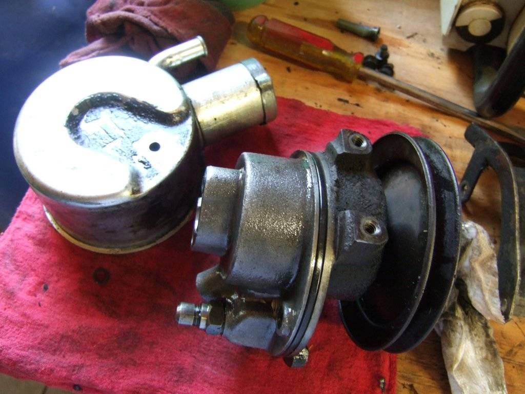 After I got the new seal installed and the pump put back together, I really had to wrestle with getting the pump mounted and the belt adjusted correctly. I purchased a special tool from Bob Merritt (300 Club, Intl.) and I used it to adjust the belt tension and the pump mount.