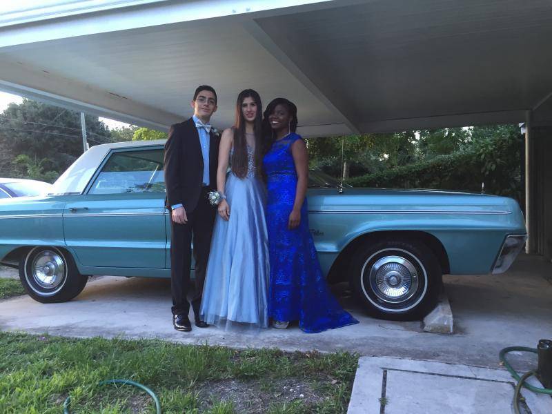 Hi Guys. Long time, no see. Just a quick update. Car has been running great. I drive it to work at least once a week and always drive it on the weekends. Last Saturday my step-daughter had her prom and she asked to be driven in the old Polara. I was flattered. Here's a pic of her (center), her date (left) and her friend (right).
