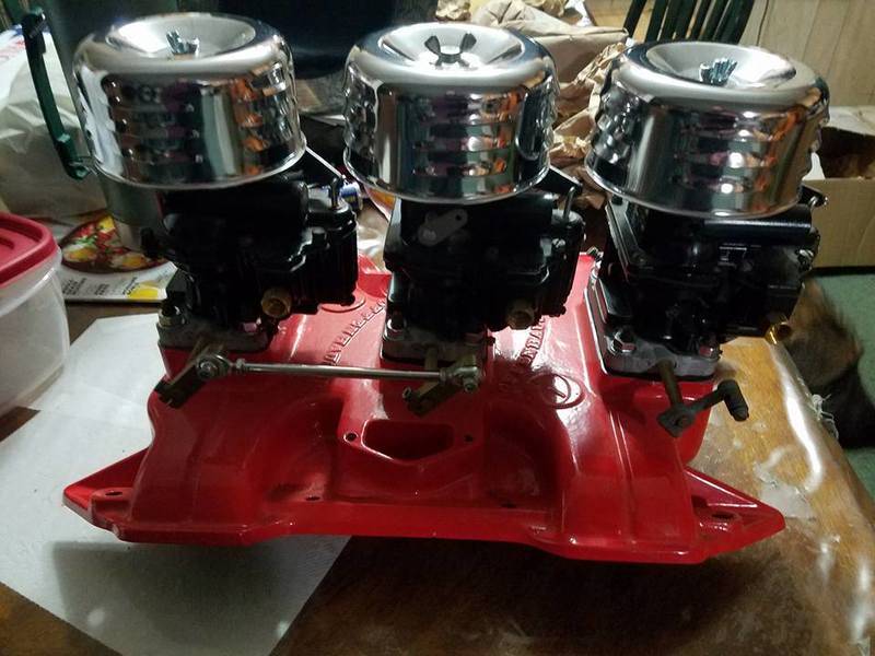 Everyone is taking apples and you may be posting about oranges.Has anyone ever used the old offenhauser tri power setups. I think they look good and alot cheaper than a Mopar six pack.