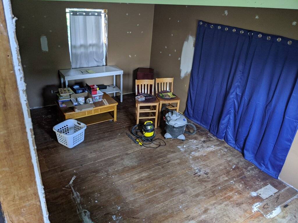 Get that taken care of, then have a co-worker sand the living room floor, it's got paint on it, and is tired looking.