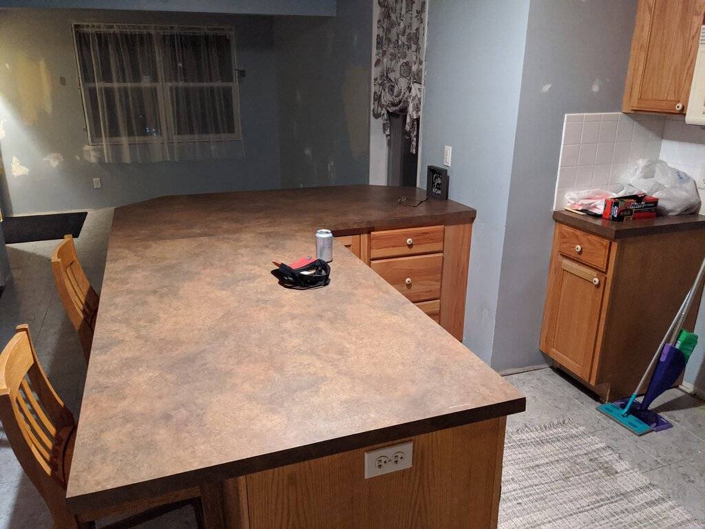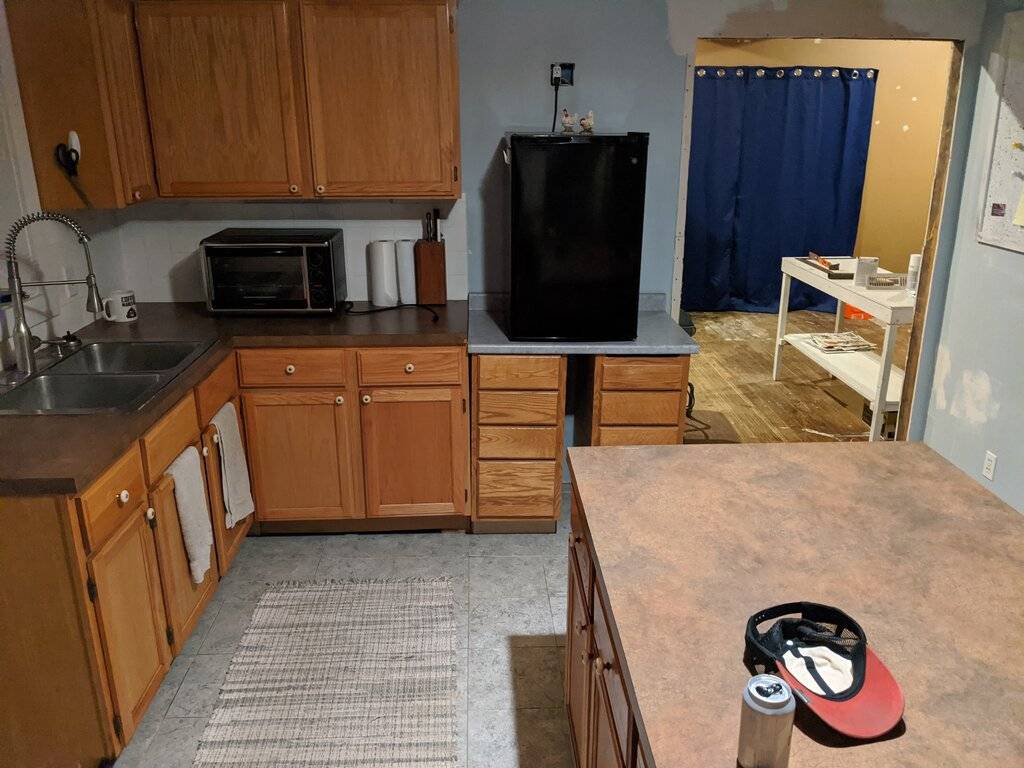 Then paint most of the walls downstairs, and a bedroom upstairs. Buy a fridge and an oven, and the kitchen is done.