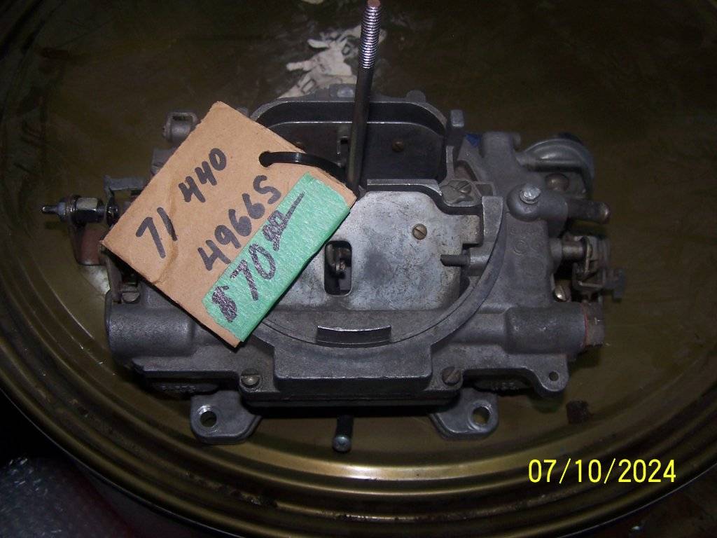 This carb is from a 1971 440 engine with automatic transmission. It is a Carter AVS 4966S carb that I bought from a vendor at the Mopar Nationals years ago. It has been sitting on a shelf but is not stuck or damaged. It will need a kit though IMO. These carbs are rated at 625 CFM and were used in B C and C body cars with the 440 engine and auto trans. I paid $70.00 for it and would like to retrieve my original investment. It can be picked up locally in Eau Claire, WI 54703 for $70.00 or shipped to USA for $95.00.