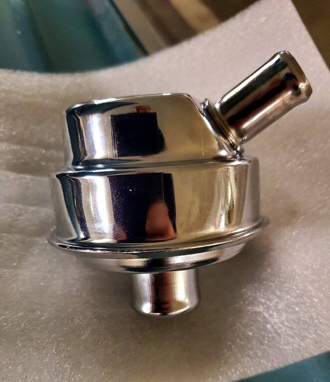 I can find plenty of 1-1/4" and 1" neck breathers, but I'll need something smaller. Ideally with a smaller than 5/8" hose connector. If you can point me to something like this in polished aluminum, stainless, or chrome I will send you a free gift bag of the stuff I bought that I can't use.