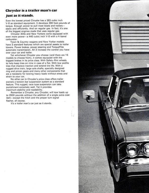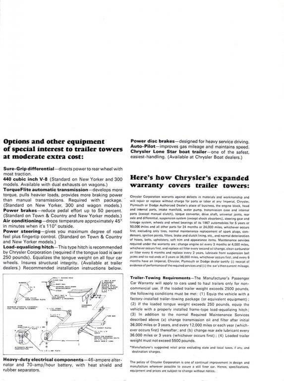 We pulled our trailer with a new 67 Newport Custom too! When we got the trailer dad thought he would have to order a trailer tow pkg. His engineers at work said a Big block, torqueflite, a/c and load leveling hitch would give him enough H.D. stuff to tow. They were correct and he wasn't driving a car that "rode like a truck" the rest of the year.