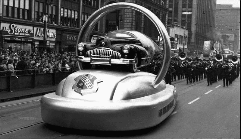 I ran an image search on the first image and it came back with:Unknown locations... Downtown parades featuring the new Buicks!