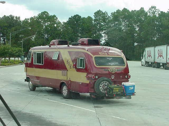 Here's a few GMC Motorhomes built from 1973-78. GM tried something a little different,using their front wheel drive set-up from the Oldsmobile Toronado and a rear suspension setup using airbags on each side of the vehicle,therefore,creating a very low platform and lots of headroom inside.Exterior height on these was also low due to this setup.They are also some of the best riding motorhomes built to date and are said to drive more like a luxury car than a motorhome and have lots of power/torque from their Oldsmobile 455/403 engines.Check out the custom one with the late model Camaro nose panel.[/QUOTE]