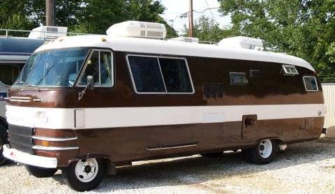 Here's a few GMC Motorhomes built from 1973-78. GM tried something a little different,using their front wheel drive set-up from the Oldsmobile Toronado and a rear suspension setup using airbags on each side of the vehicle,therefore,creating a very low platform and lots of headroom inside.Exterior height on these was also low due to this setup.They are also some of the best riding motorhomes built to date and are said to drive more like a luxury car than a motorhome and have lots of power/torque from their Oldsmobile 455/403 engines.Check out the custom one with the late model Camaro nose panel.