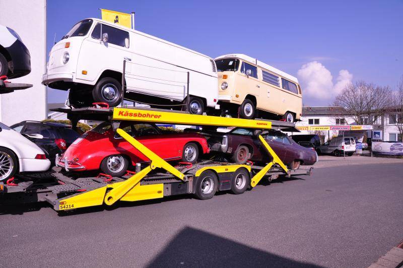 Two T1 busses were on the trailer when I got my car. One Transporter version and one very rare Westfalia Camper. Both in better then new condition...! The trucker told me, that the whole trailer was insured for more than 500k €. Ok, the porsche 356 takes a good bit of that, but still a lot of money to spare for the others..! All cars on the trailer came from the U.S.
