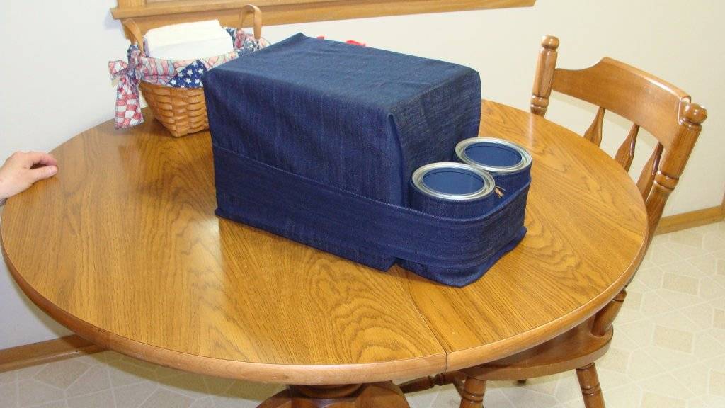 With mostly my wife's sewing talents, she made a bench seat cup holder, block of foam and 2 new empty quart paint cans. the levi strap has velcro in back to tighten