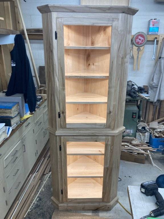 Matt you have bad *** carpenter and finish work skills.Just finishing up on this corner display cabinet for a different client. It’s spalted maple that I’ve had in the shop for a year just waiting for the right piece to use it for. This one is going into the dining room of a new log home so I figured it’d be perfect.