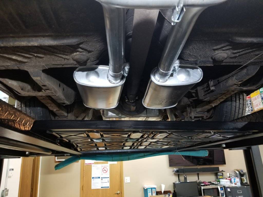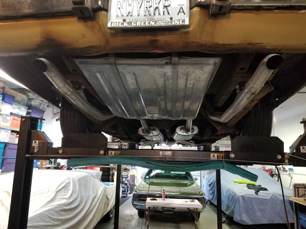Got back to the shop and moved some stuff around and backed the New Yorker up onto the hoist. With the seasons changing, I plan on pulling the trans for a rebuild and take the 440 out of the car to re-gasket everything and give it a good freshening up.