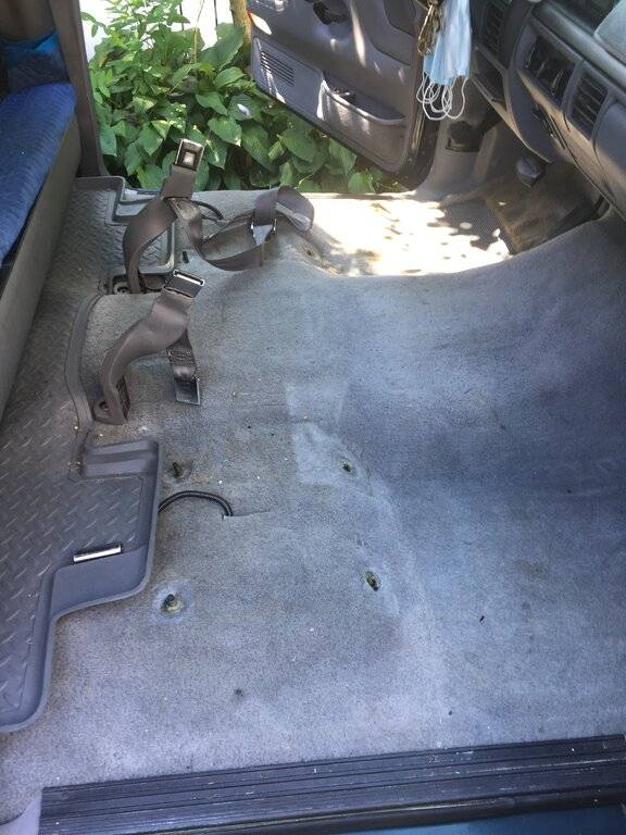 Last summer off the discount shelf at Best Buy, I bought a low profile alpine 8 inch sub/amp combo. The only thing missing were the 4 mounting brackets, I made some at work from scrap metal and they work perfect. Finally had a little spare time to install it under the center jump seat of the F150. Had to pull both seats out as the jumpseat frame bolts under the driver and passenger seat frame. Now to wire it up for some BOOM BOOM.