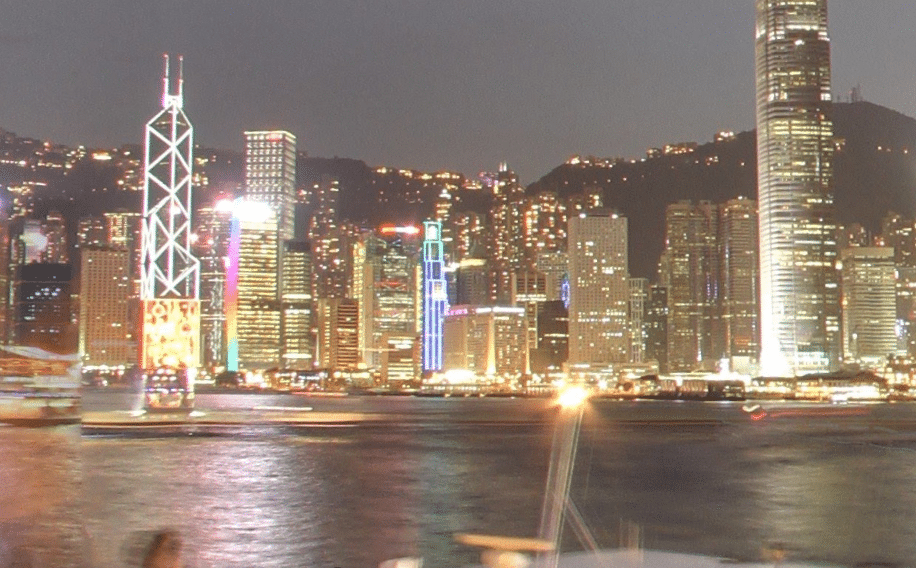This is looking southerly acress Victoria Harbour at the downtown area. Now it gets interesting. There is a railing behind the car. You can see the skyline lights THROUGH the car windows.