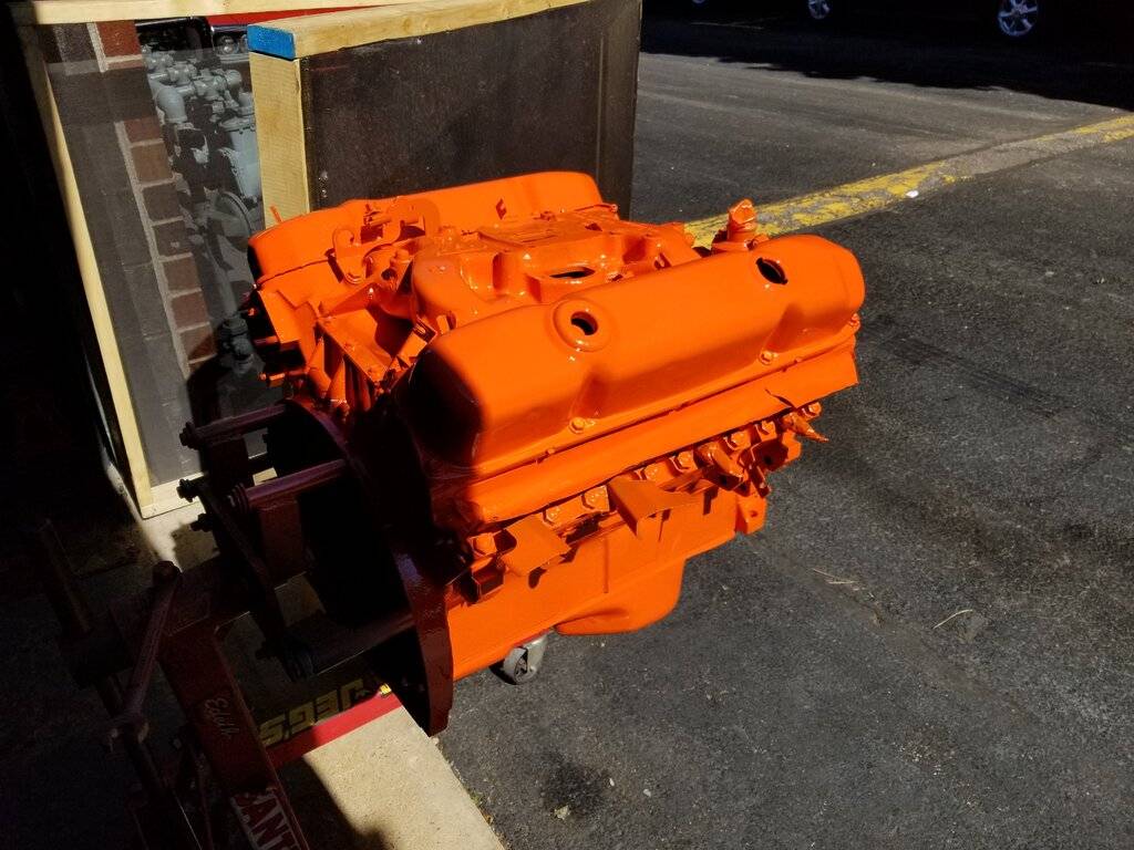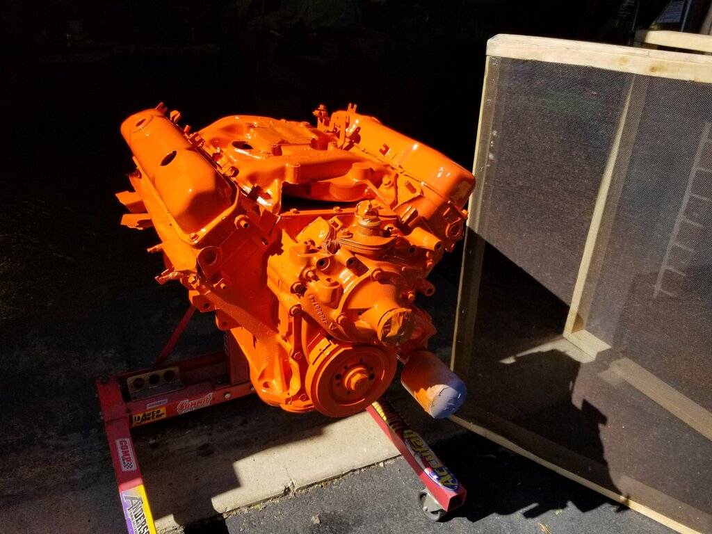 Once the heads, valley pan, intake manifold, water pump housing were on, it was time to prep for the hemi orange paint.